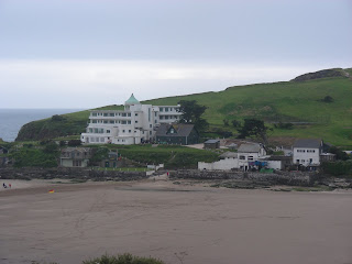 We woke up early hearing the boat start to lift up on the tide and turn but it settled well and we didn’t even stretch the chain out, leaving it curved on the sand and us landing next to our anchor. We’ve now moved the anchor to slightly deeper water but still well out of the main stream and it’s holding well. Today we walked along the beach right round the bottom of the cliffs and across to Burgh Island. It’s been very damp and overcast today, with fog, rain and very little sun so the view was not particularly inspiring. We made our way up the hill to the village and bought postcards, then headed back to Talia for lunch as the baguettes at the Pilchard Inn didn’t look too promising.